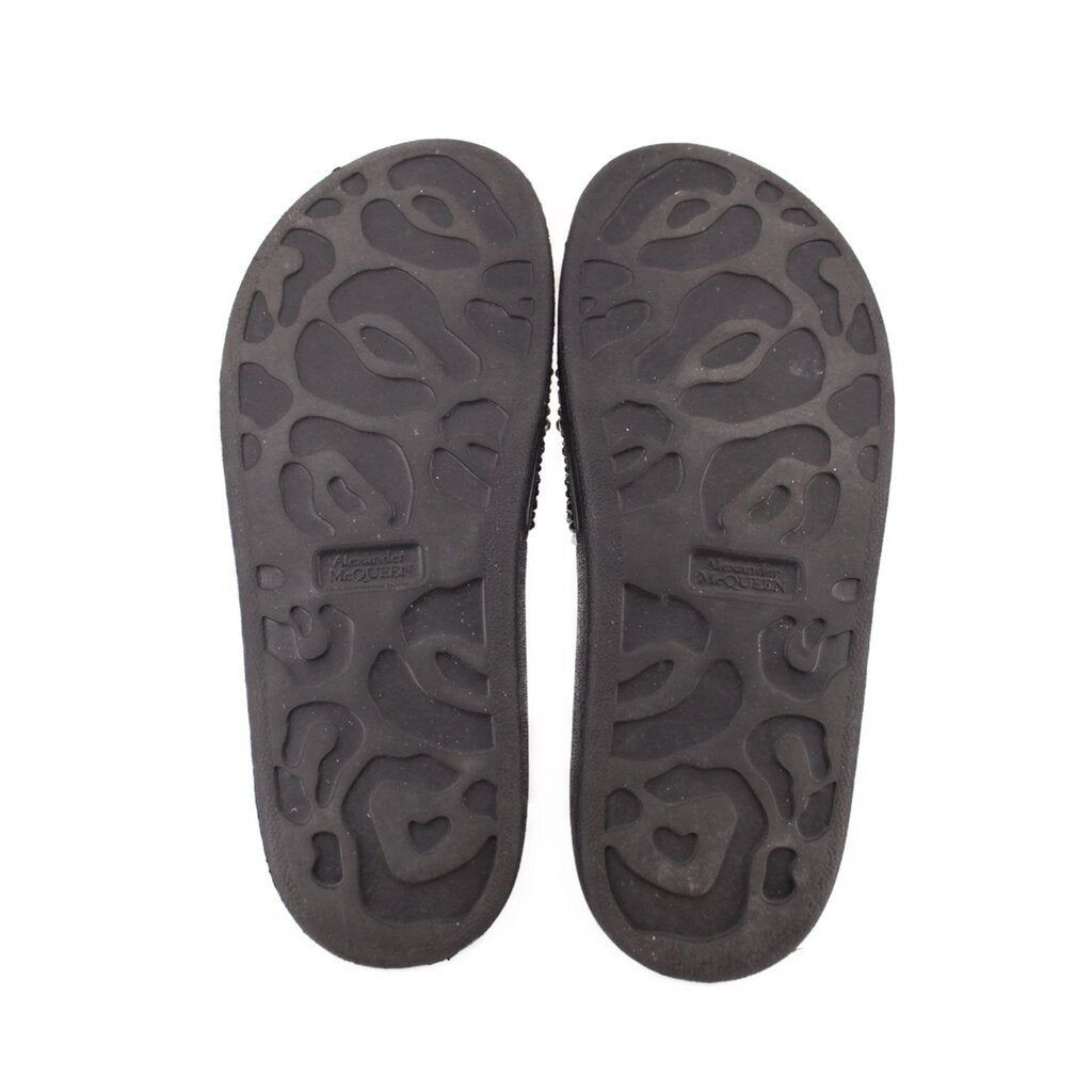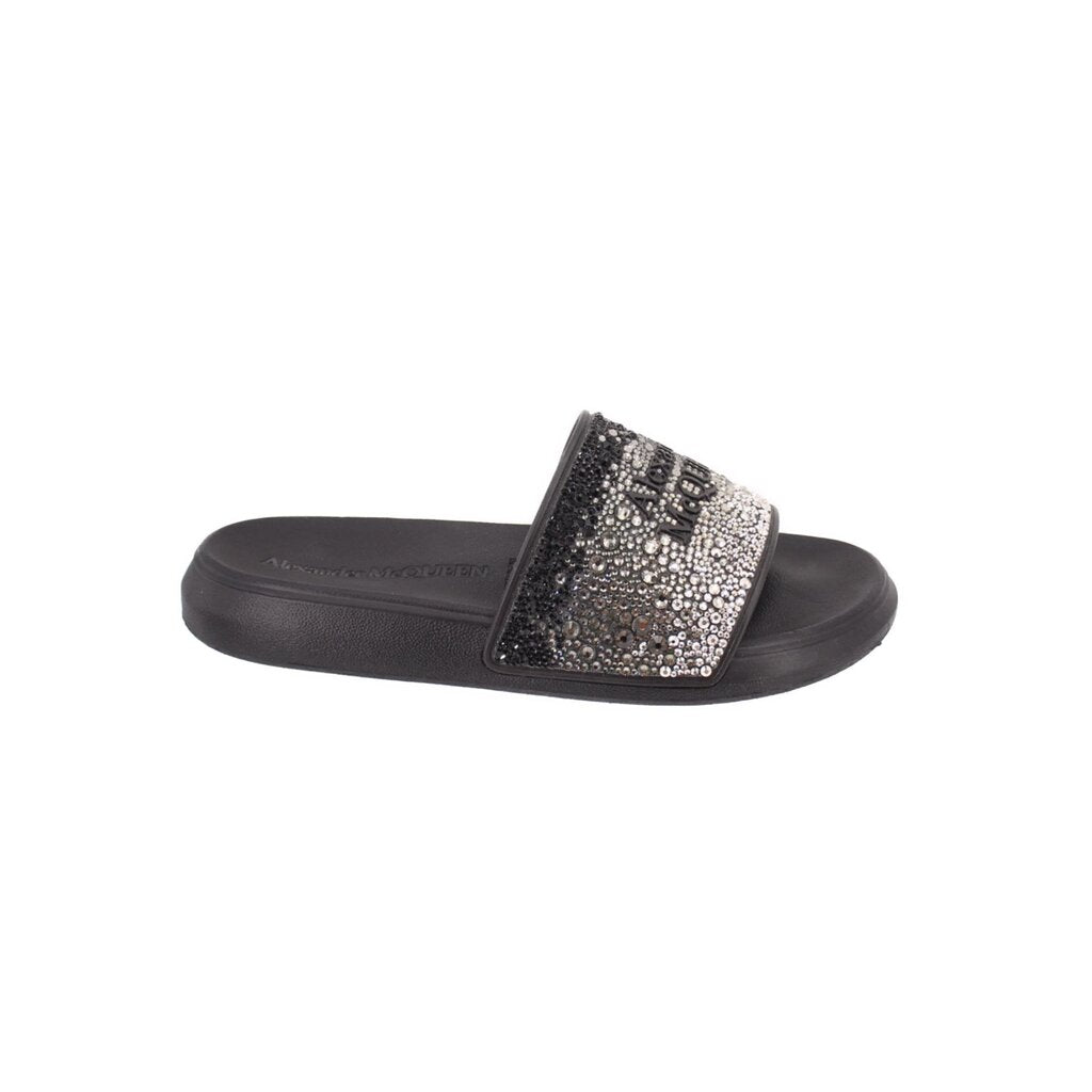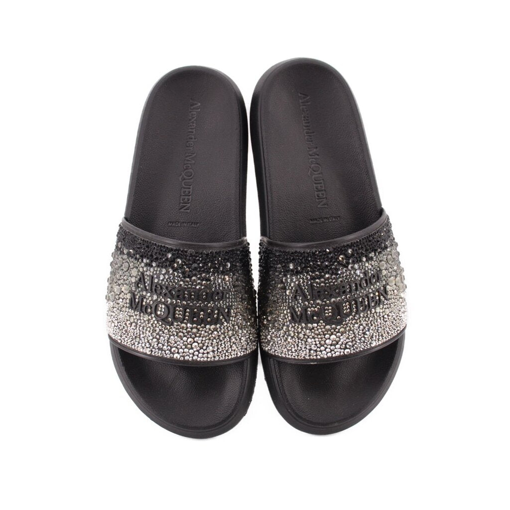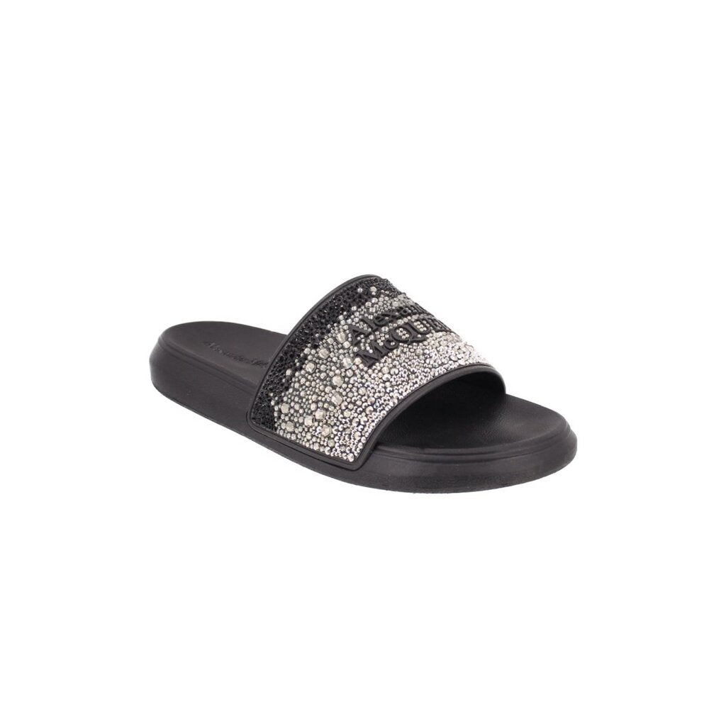 ALEXANDER MCQUEEN CRYSTAL LOGO POOL SANDALS BLACK 38 EU | 8 US