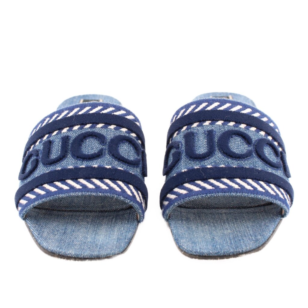 GUCCI JANE LOGO DENIM SANDALS BLUE 39 EU | 9 US