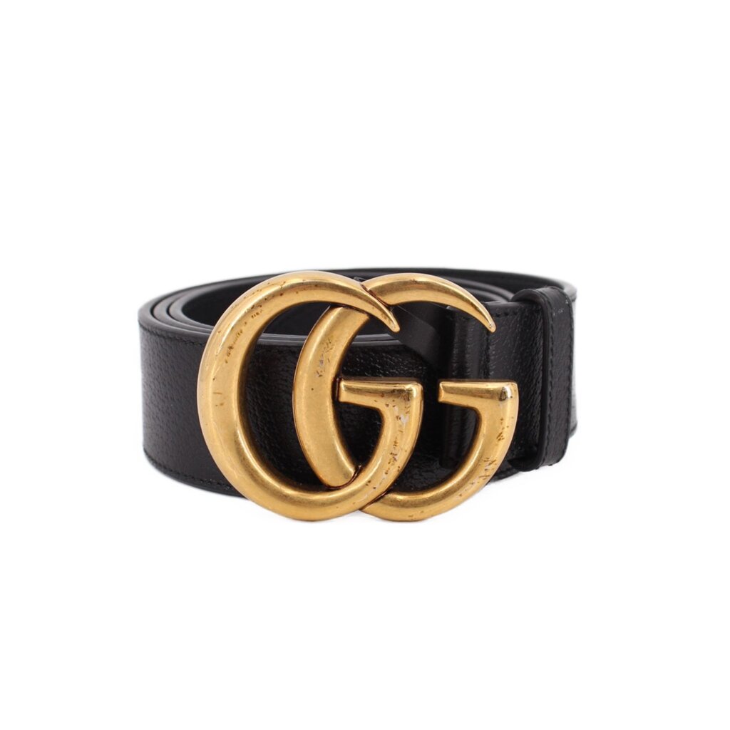 GUCCI MARMONT DOUBLE G WIDE LEATHER BELTS BLACK L | 40