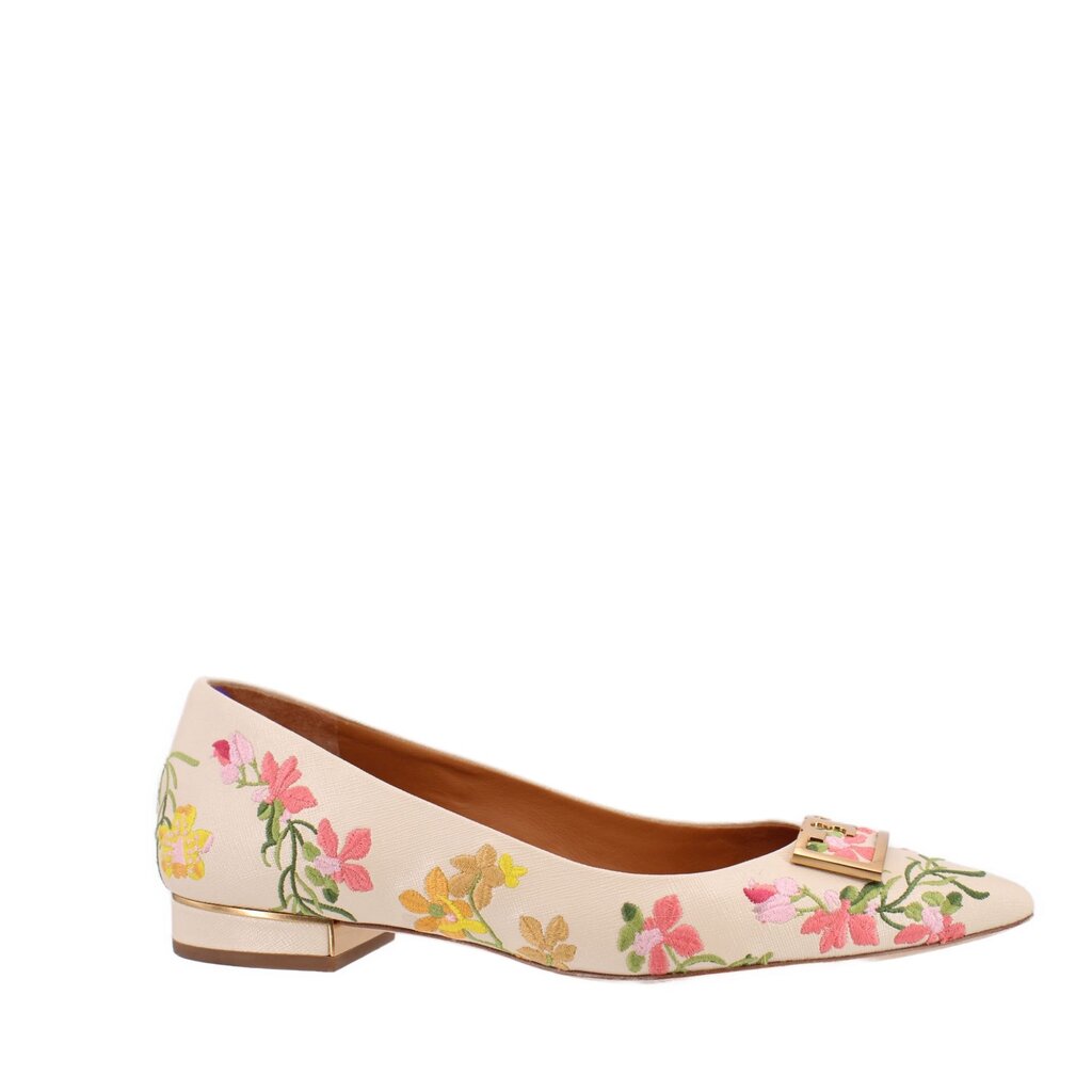 - TORY BURCH Gigi Embroidered Pointed Toe Flats in Cream